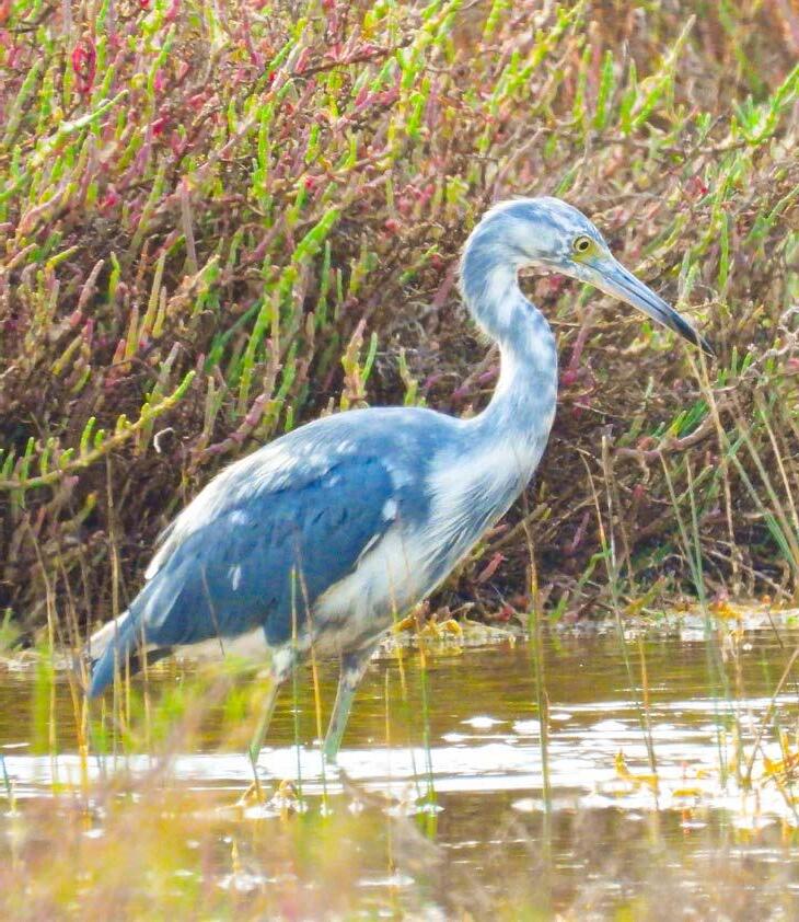 Una excepcional garza azul joven fue avistada en los Humedales de Ventanilla en estos días. Cuando el joven guardaparque Erik Rebaza hacía su patrullaje regular, se percató de la hermosa ave andando entre las totoras, en breves saltos, mojando sus garrillas y sorbiendo agua. El hallazgo entusiasmó a todo el personal del Área de Conservación Regional (ACR) Humedales de Ventanilla: hacía años que casi no veían esta especie, pese a tenerlo en su escudo institucional, por la época en que era encontrada con frecuencia. Más insólito es toparse con una garza azul joven, que aún no completa su color de plumaje.