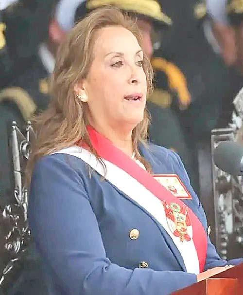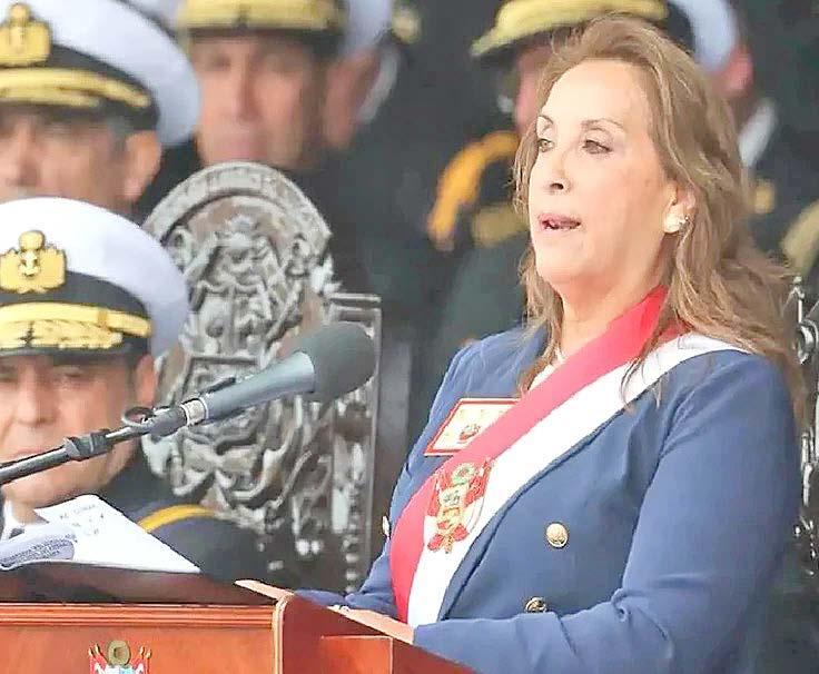 curso, la presidenta Boluarte intentó centrar la ceremonia en un tono patriótico, rindiendo homenaje al almirante Grau y destacando el