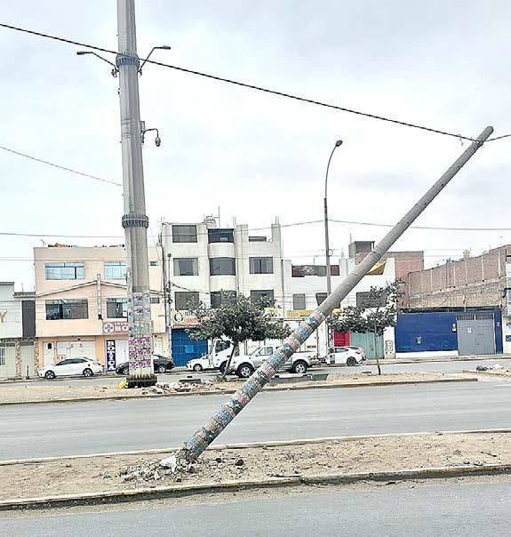 Vecinos de la avenida Canta Callao viven con temor desde el lunes 6 de octubre, cuando un poste de alumbrado público quedó inclinado y a punto de colapsar tras ser impactado por un vehículo conducido, según testigos, por un hombre en presunto estado de ebriedad. Tres días después, la estructura continúa sostenida únicamente por los cables eléctricos, lo que representa un grave peligro para peatones y conductores que transitan por la zona.