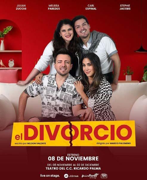 La puesta en escena fue escrita por el argentino Nelson Valente y dirigida por Marco Palomino. La obra ha sido ganadora del Premio Estrella de Mar a la “Mejor Comedia”, entre otros reconocimientos. “Estoy realmente emocionado de poder dirigir ‘El divorcio’. Es un gran reto poner en escena un éxito internacional como esta comedia que ya ha cautivado a miles de espectadores en Argentina y Uruguay, más aún con un gran elenco comprometido con este gran proyecto teatral”, manifestó Palomino. “Estoy convencido de que esta comedia hará que cada espectador salga del teatro identificado y con una sonrisa de oreja a oreja”, acotó.