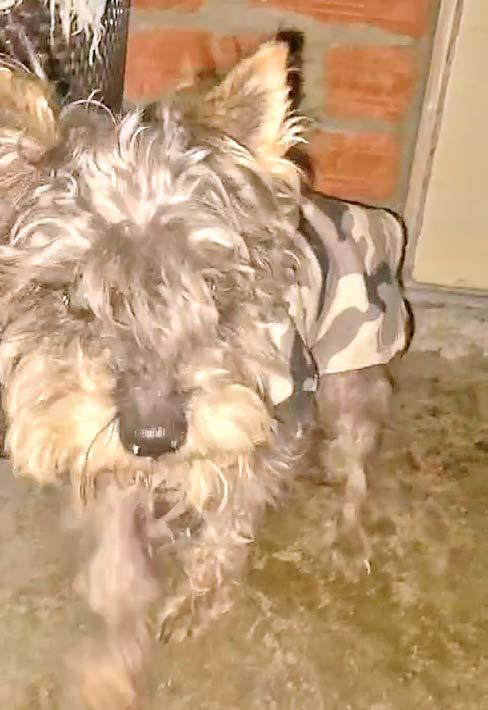 El can, aparentemente de raza Schnauzer miniatura, viste una ropita estilo militar y no tendría cola. Si conocen a los dueños de este tierno animalito,