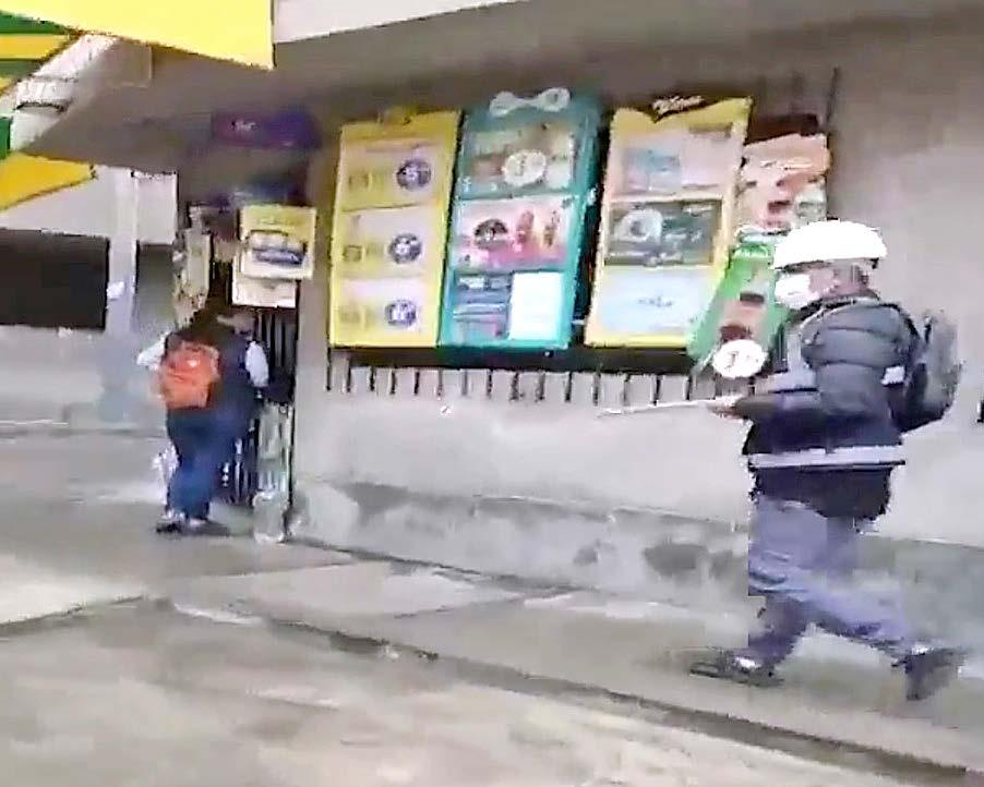 Al darse cuenta que se encontraban siendo captados por una de las vecinas que se percató de la extraña situación, ambos sujetos huyeron del lugar. “En 20 minutos regreso, madre”, le dice el hombre a la residente, a lo que ella responde: “Muéstreme su identificación”.