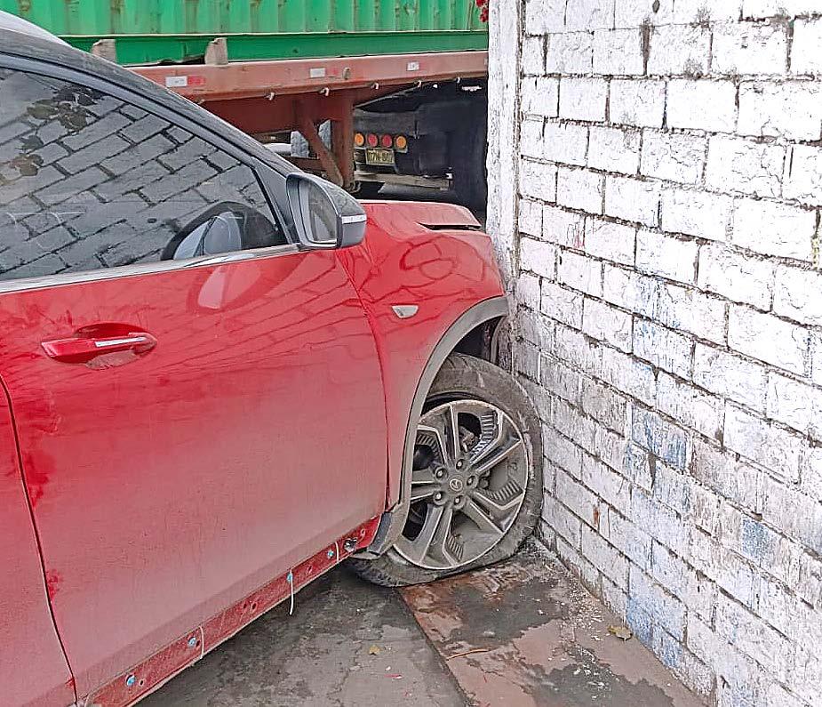 Según Machuca Isla, salió de la base Naval con dirección a la avenida Atalaya, cuando un tráiler le habría cerrado el paso, por ende debió hacer una maniobra para evitar una catástrofe mayor. Cabe mencionar que, felizmente no hay víctimas mortales ni heridos que lamentar, ya que el conduc-