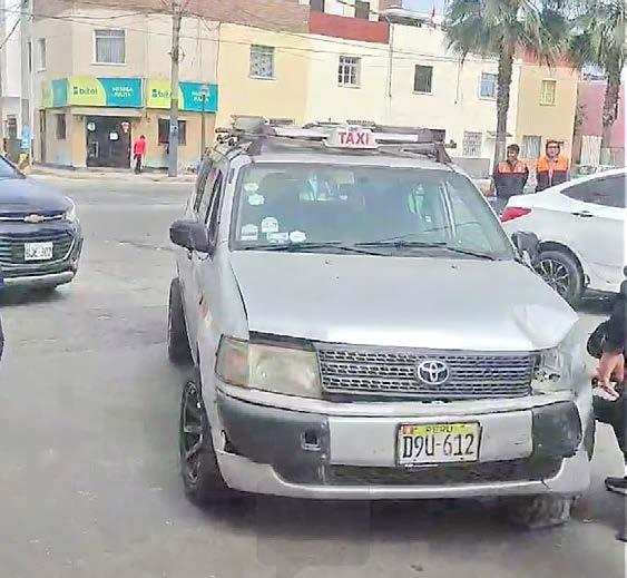 En ese sentido, uno de los vehículos afectados fue un taxi color gris de marca Toyota con placa D9U-612, que terminó con la parte delantera del lado izquierdo completamente afectada.