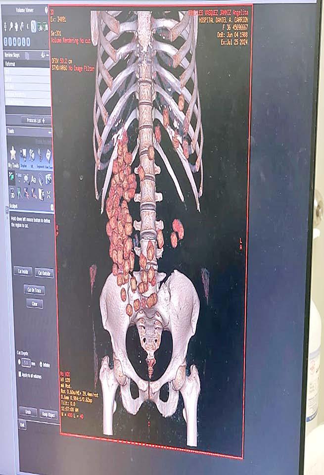 Ante esta situación, Gonzales Vásquez fue rápidamente trasladada al hospital Daniel Alcides Carrión, en Bellavista para efectuarle una tomografía, donde el radiólogo de turno confirmó “se observan cuerpos extraños en la cavidad abdominal”.