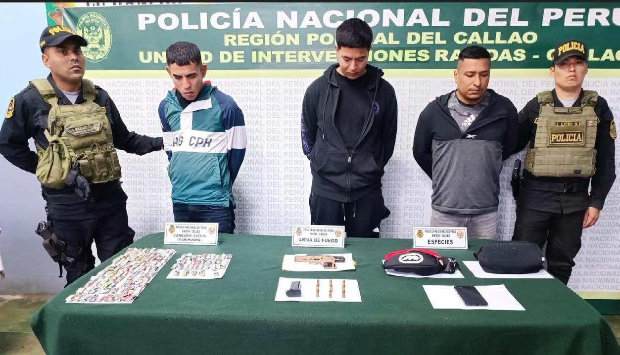 Capturaron a tres presuntos integrantes de la organización criminal “La jauría del mal”, implicados en los presuntos delitos de microcomercialización de drogas y robo agravado, por las inmediaciones de la cuadra 7 del jirón América en el Callao.
