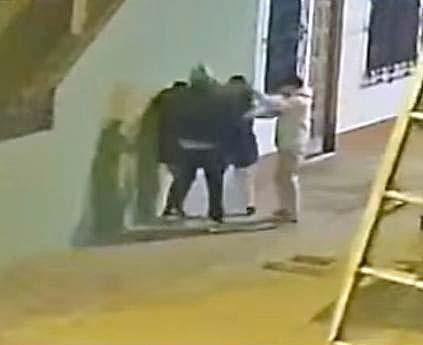 Minutos después, ambos individuos se dieron media vuelta y se dirigieron hacia las féminas para interceptarlas, ellas al darse cuenta de la presencia de los ladrones intentaron huir, sin embargo, fueron reducidas en la pared, donde incluso, se ve que tanto los sujetos como las mujeres forcejean. Algunas personas transitaban por el lugar, pero decidieron no intervenir por su se -