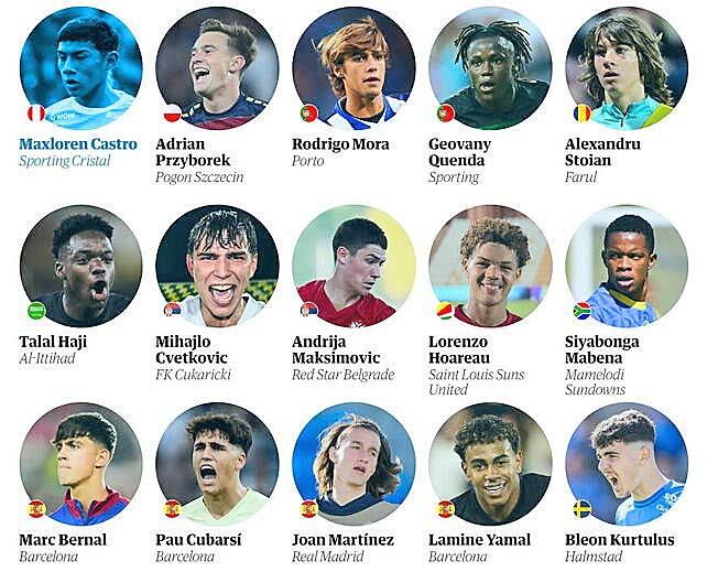 Estos son algunos de los peloteros destacados: Franco Mastantuono (Argentina), de River Plate; Moisés Paniagua (Bolivia), de Always Ready; Estevao (Brasil), de Palmeiras; Kendry Páez (Ecuador), de Independiente del Valle; Lamine Yamal y Pau Cubarsí (España), de Barcelona; entre otros.