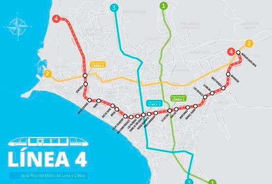 La Línea 4 del Metro de Lima será un sistema subterráneo de 23.6 kilómetros de longitud, sumados a