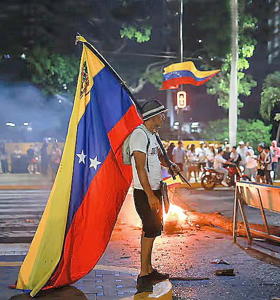en protestas contra la reelección de Nicolás Maduro, que estallaron en Caracas y otras ciudades