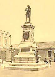 NOTA: El monumento estuvo inicialmente en el espacio que existe entre el local que fue de la prefectura (hoy Casa de la Juventud) y el edificio de la Cámara de Comercio, a mediados de la década del 40 fue trasladado cerca a la intersección de las avenidas Marco Polo y Buenos Aires, donde actualmente permanece.