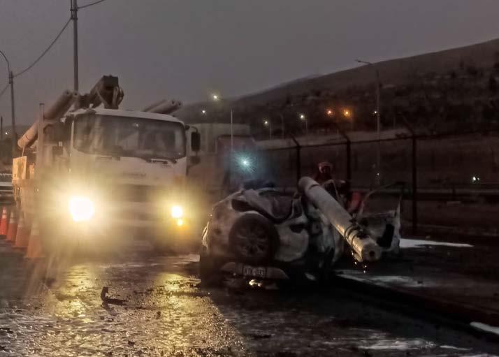 Al promediar las 5:40 p.m. de este lunes 2 de diciembre, se registró un fuerte accidente vehícular en la avenida Néstor Gambetta, a la altura de la refinería La Pampilla, en Ventanilla, donde un auto chocó contra un poste haciendo que este caiga encima y luego se prenda en llamas.