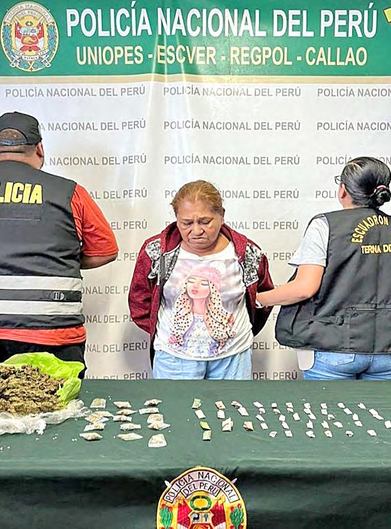 María Candelaria Pacora Prado (69), conocida como “Rita” o “Tía Pacora”, fue detenida nuevamente por presunta microcomercialización de drogas en el Callao. La intervención se realizó en un inmueble ubicado en el Jr. Guisse N.° 435, donde se hallaron aproximadamente 200 ketes de pasta básica de cocaína y un kilo de marihuana. Esta sería la tercera vez que la mujer es intervenida por el mismo delito, tras haber sido capturada anteriormente el 29 de abril de 2023 y el 6 de febrero de 2025.