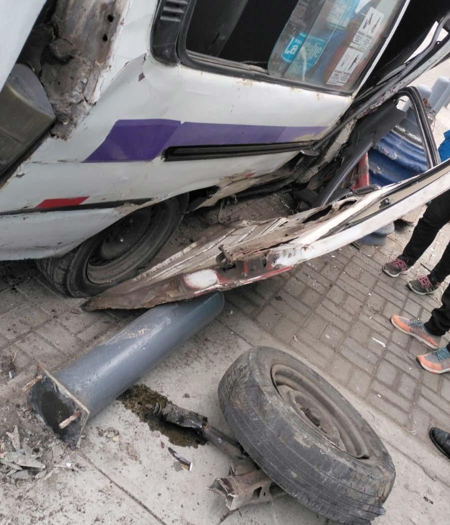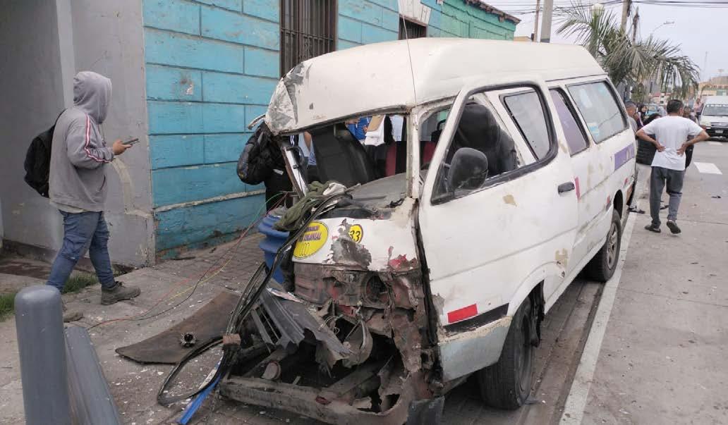 El accidente tuvo lugar a las 07:05 horas, cuando una unidad pública, de placa B1E-752, impactó violentamente contra unas luminarias (faroles), dejando el vehículo destruido en gran parte.