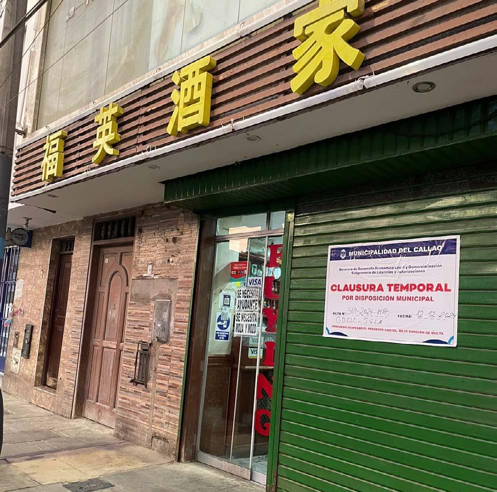 El chifa “Fu Ying”, ubicado cerca del cruce de las avenidas Alameda y Santa Rosa, en la zona de Gambetta, Callao, fue clausurado temporalmente debido a que el interior del establecimiento se encontraba en condiciones insalubres.