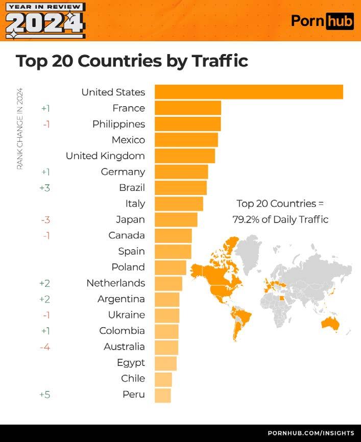 los 20 países principales representan el 79,2% de todo el tráfico diario”, escribieron de acuerdo con los datos de la página.