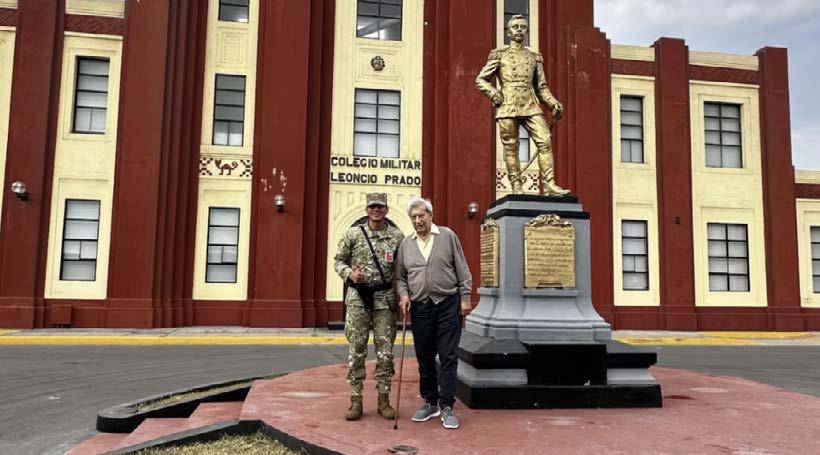 El reconocido escritor y ganador del Premio Nobel 2010, Mario Vargas Llosa, volvió a pisar el Colegio Militar Leoncio Prado, una institución que marcó su vida personal y literaria, ya que le inspiró a crear su primera novela: “La ciudad y los perros”, con la cual conquistó América Latina. La visita fue registrada por su hijo, Álvaro Vargas Llosa, quien publicó una fotografía en su cuenta de “X”, donde aparece el también político junto a un militar que custodia la institución ubicada en el distrito de La Perla, en el Callao.