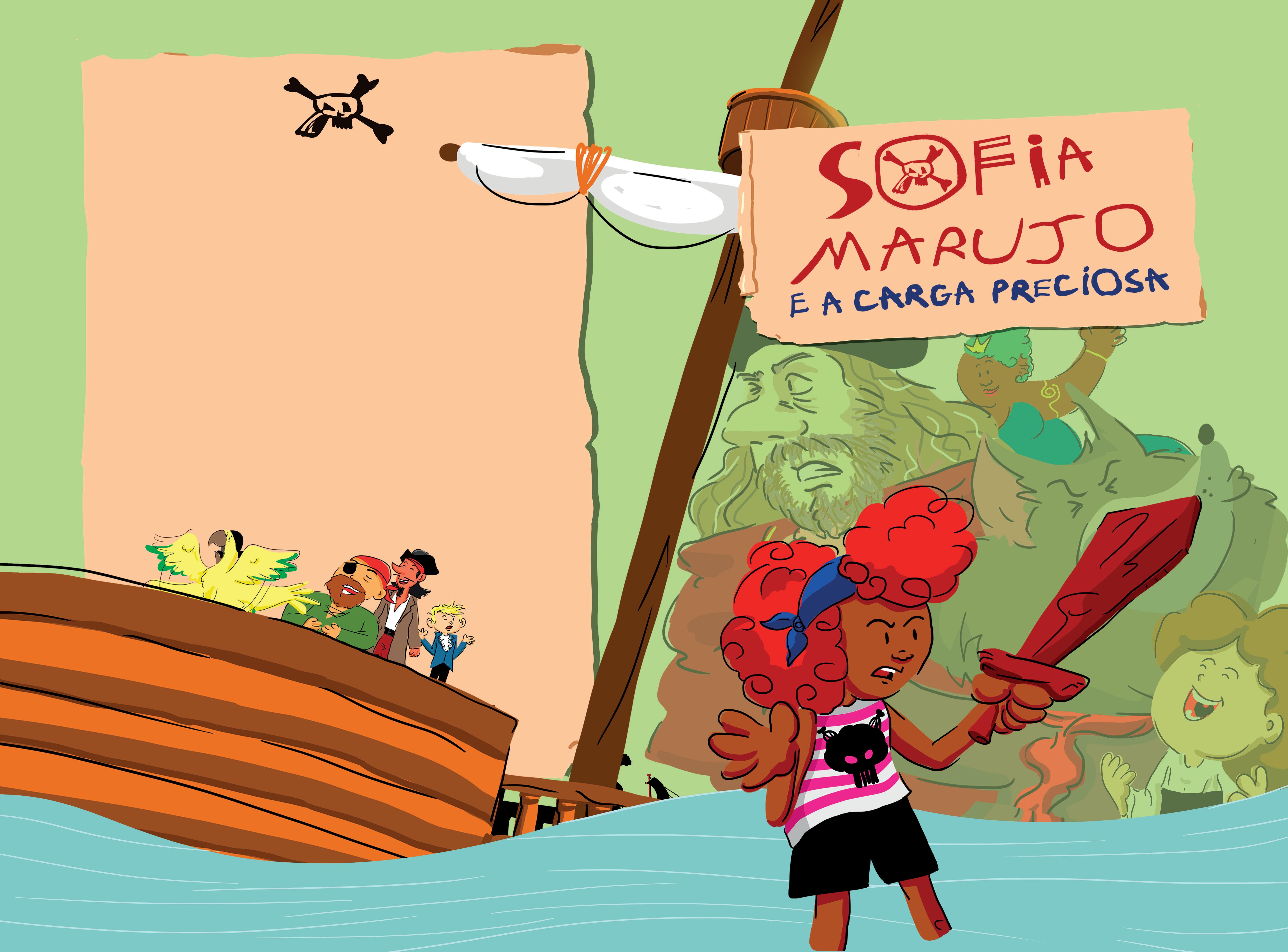A-hoy, tripulantes deste livro! Se vocês são novos aqui nesta coleção, permitam que eu me apresente: sou Okun, a narradora da saga de uma garota muito corajosa e esperta, Sofia Marujo Frigideira, uma menina negra de 10 anos da Ilha de Melba que ousou sonhar em ser pirata. Para isso, ela pediu ao pai, o cozinheiro Angus Mão-de-Frigideira, e à mãe, Geovanna Marujo, conhecida em outros tempos como a temível pirata Surdez Ruiva, permissão para singrar os mares no Rainha-do-Mar, o navio-escola do Capitão Sardinha. Porém, mal pisou na embarcação e Sofia Marujo já teve que enfrentar grandes desafios.