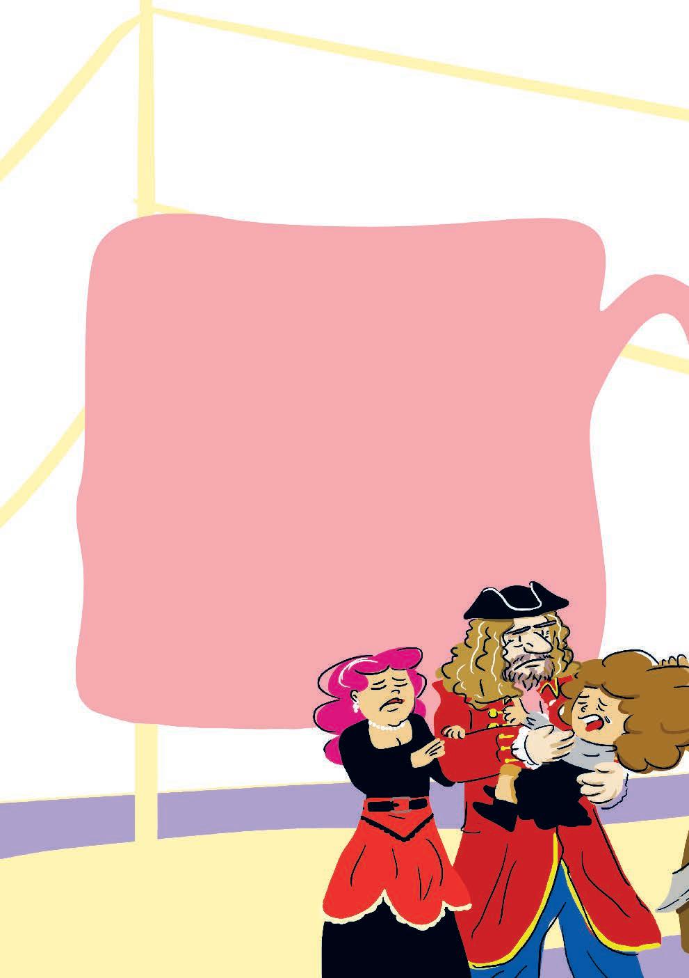 – Não sou uma menina, papi! Eu sou uma PIRATA! Aquele navio pertenceu a mi abuelo! Meu avô! Não podiam ter feito o que fizeram comigo! ¡Ay, cómo me duele el corazón! – lamentou.