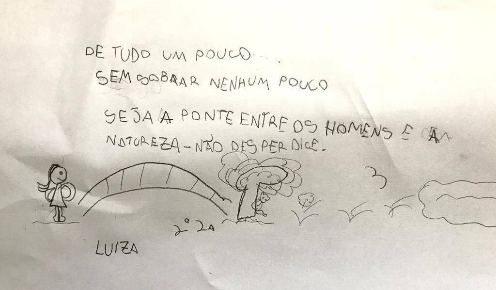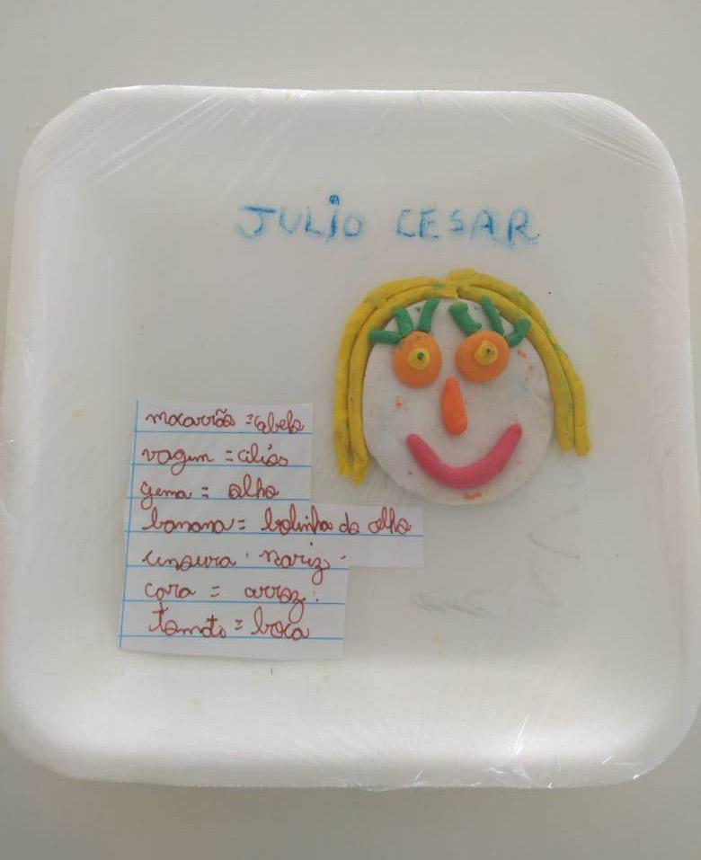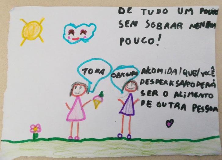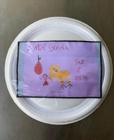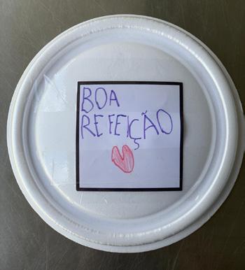 Os alunos da Educação Infantil (Nível C) do Colégio Bom Jesus Diocesano – Lages‑SC confeccionaram cartinhas de mensagens com os familiares para serem anexadas às marmitas (quentinhas) entregues aos atendidos pelo projeto do SEFRAS no Largo da Carioca (Rio de Janeiro). A motivação dos alunos foi inspirada pela temática de Ação sobre a Nutrição essencial e saudável aos moradores de rua e usuários do serviço prestado por meio da coordenação do frei Diego de Melo OFM. Diante da proposta, as famílias prontamente fizeram, bateram fotos e enviaram para as professoras. Entre as cartinhas, uma coincidência aconteceu: a mensagem de nosso aluno Pedro, que enviou com tanto carinho, foi parar nas mãos de outro Pedro, que se emociona em dizer “Olha eu estou eternamente grato com esse bilhetinho aqui, no qual coincidência ou não foi endereçado a Pedro e justamente eu sou Pedro […] agradeço ao Pedro que mandou de lá para mim e vou guardar comigo de recordação”.
