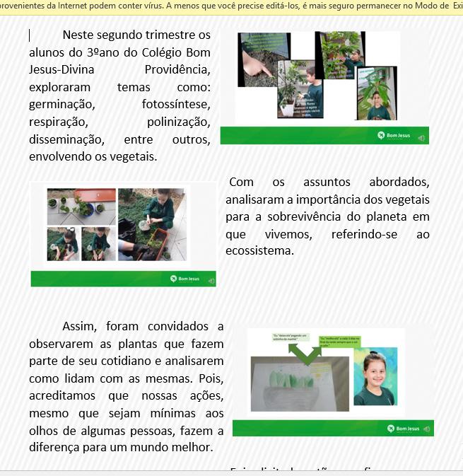 Durante o mês de setembro, os alunos da Educação Infantil (Nível B) do Colégio Bom Jesus Coração de Jesus – Florianópolis‑SC trabalharam com o projeto “Lá na fazenda” e ouviram a história “A árvore sem folhas”, contada durante as aulas on‑line. Aprenderam sobre algumas plantas e os cuidados que precisam ter para crescerem fortes e saudáveis.