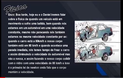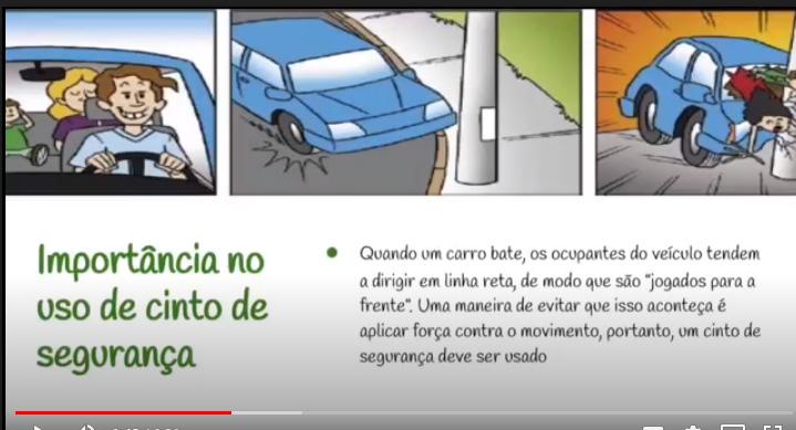 Olhando para essas duas fotos acima fazemos as seguintes perguntas: é importante andar com o veículo na velocidade permitida? O uso do cinto de segurança é importante? A 1ª Lei da Inércia existe mesmo? Se você assistir ao vídeo, conseguirá responder a todas essas perguntas.