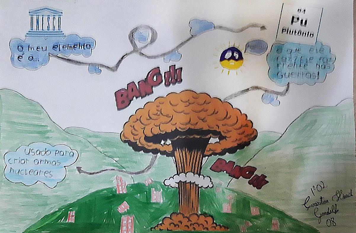 diversidade de abordagens feitas pelos jovens. Além das já citadas anteriormente, surgiram algumas inesperadas e muito bem contextualizadas com o momento atual como, por exemplo, o uso de álcool gel para higienizar as mãos e o perigo iminente de ocorrer uma combustão dentro do carro, por uma faísca ou pela alta temperatura ambiental em dias de calor. A seguir, alguns registros de trabalhos: