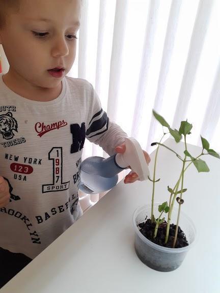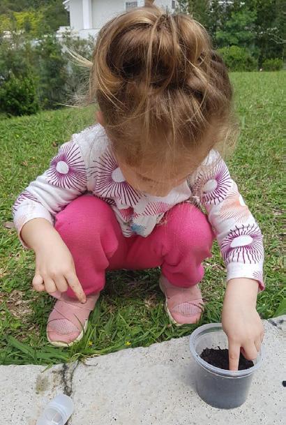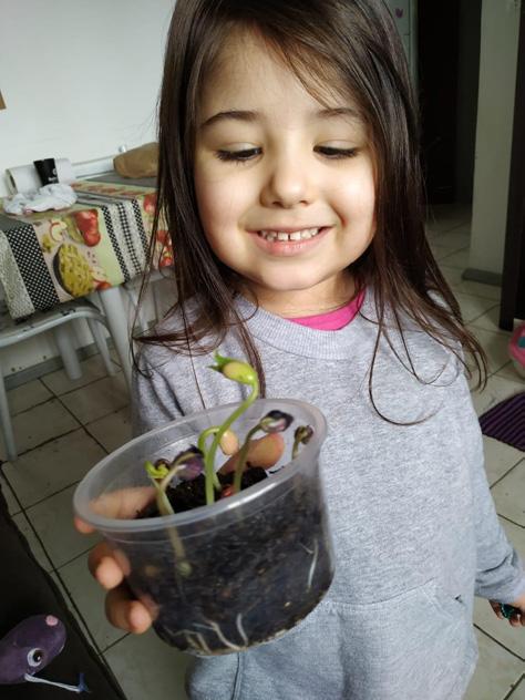 Após a contação da história, as crianças se deram conta de que, com muito carinho, água e luz do sol, poderiam ver a sua própria plantinha nascer. Então, colocaram o grão de feijão na terra, fazendo um pequeno buraquinho com os dedos, como se fosse uma caminha, taparam os buraquinhos e regaram com água. Ah! Mas não podiam colocar muita água, pois ela poderia se afogar. Foram momentos de muitas descobertas! Perceberam que, a cada dia, aquela plantinha mudava sua forma, tamanho e significado para eles. Foram muitos relatos da experiência que vivenciaram em casa, durante as nossas aulas.
