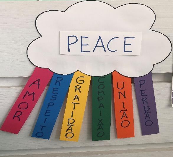 Ao longo de duas semanas, interagiram e estabeleceram novas amizades, contribuíram nas rodas de conversa, tecendo diversas considerações sobre atitudes simples que podem fazer do mundo um lugar melhor, conheceram o significado da palavra fraternidade e por meio de histórias, vídeo e canções, refletiram sobre sua prática em diferentes contextos. Atrelados ao tema, a paz e as virtudes também fizeram parte das atividades de registro e, por meio de desenhos, escritas e dobraduras criativas, os alunos representaram sentimentos e conhecimentos. Casas de passarinhos foram também construídas e fixadas ao ar livre, para observarem, na prática, a mensagem de um dos livros de história trabalhados, de que o cuidado com o outro também se reflete na preocupação com sua segurança.