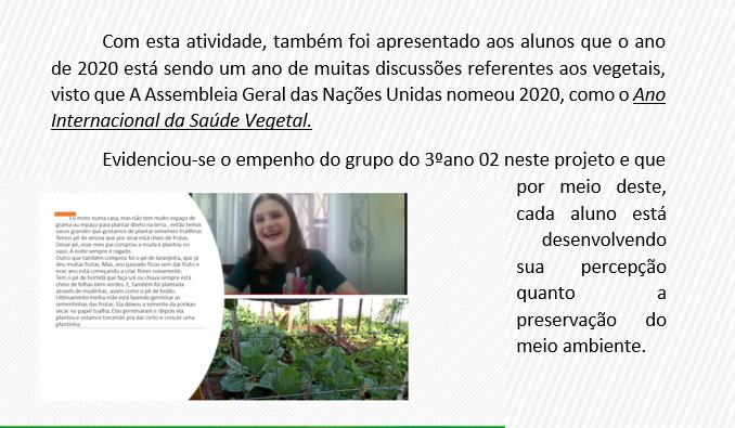 Neste período de aulas remotas, com todos os desafios encontrados, a turma do 3.o ano do Ensino Fundamental I do Colégio Bom Jesus Nossa Senhora Aparecida – Venâncio Aire‑/RS conheceu, durante as aulas de Ciências, diferentes formas adotadas pelas plantas para se reproduzirem. Em meio às atividades de pesquisas sobre reprodução vegetal, os alunos puderam observar o processo de germinação por meio da experiência do plantio de diversas sementes, assim como o seu tempo de desenvolvimento.