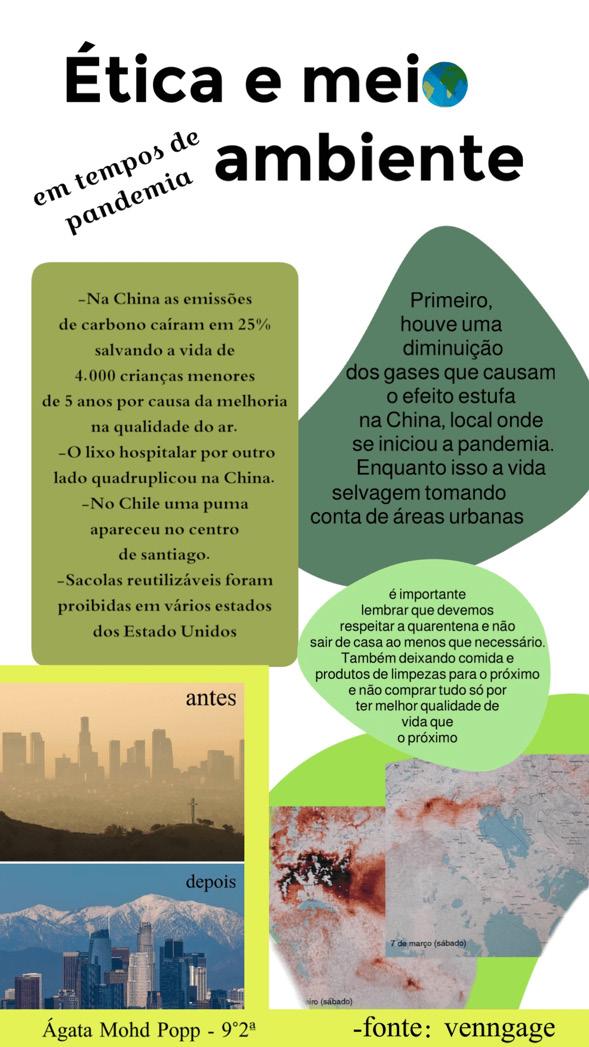 Durante as aulas de Filosofia, os alunos do 9.o Ano do Ensino Fundamental II do Colégio Bom Jesus Divina Providência — Ahú Curitiba‑PR refletiram acerca da temática “A ética e o meio ambiente em tempos de pandemia”. A partir da leitura das teorias filosóficas sobre a ética, analisaram notícias que abordavam os diversos impactos causados pela pandemia da COVID‑19.