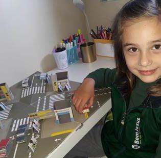 Durante as aulas híbridas, os alunos da Educação Infantil (Nível D) matutino, do Colégio Bom Jesus Nossa Senhora Aparecida – Venâncio Aires‑RS, ouviram uma história chamada ‘’O trânsito no mundinho’’. A história conta que devido a tantos homenzinhos indo e vindo nesse mundinho, o trânsito ficou complicado, por isso foi criado o código de trânsito para a segurança de todos. Em seguida, foram trabalhadas algumas leis de trânsito na minicidade do Colégio.