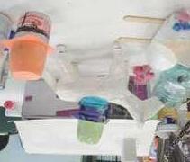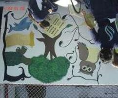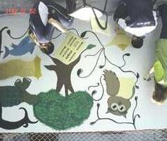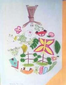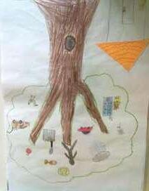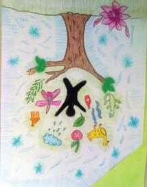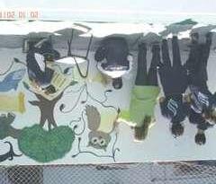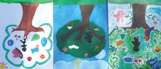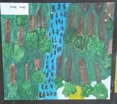 Cada aluno deveria realizar uma produção artística bidimensional: no fundo deveriam ser utilizados processos químicos (abstrato) e na figura uma composição com o tema Florestas.