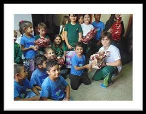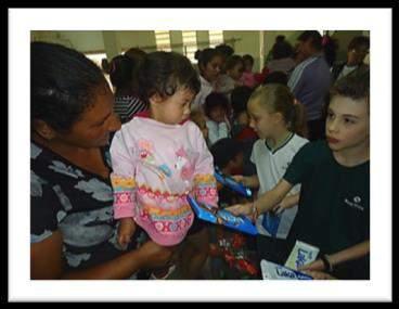 Além da graciosidade e do carinho das crianças, que não apenas contaram a história, mas também confeccionaram os livros para presentear os novos colegas, foi surpreendente a atenção e a curiosidade das crianças durante a atividade.