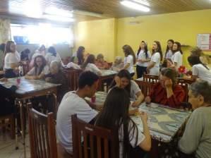 Os alunos do Clube dos Solidários tiveram uma tarde de convivência com as senhoras que são atendidas pelo Lar Iracy. Os alunos realizaram atividades lúdicas com as senhoras, proporcionando a elas uma tarde diferenciada. Tanto para os alunos, voluntários participantes da ação, quanto para as senhoras do Lar Iracy, a ação teve fundamental importância devido ao vínculo criado durante suas conversas. Conhecer a história de vida das idosas permite aos adolescentes uma reflexão sobre suas virtudes e a responsabilidade de viver o presente de forma a buscar a construção de um futuro mais fraterno.