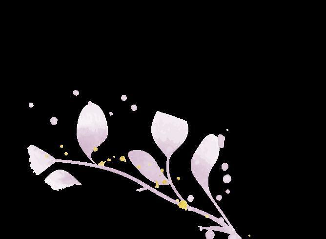 Textura de flor na cor lilás e folhas na cor dourada