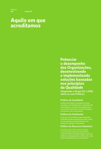 Integrando o Grupo CH, a KWL adota as suas Políticas