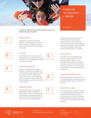Revisão 01 No âmbito da “Política de Recrutamento e Seleção” atendemos aos seguintes princípios orientadores: