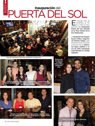 l pasado mes de noviembre se llevó a cabo la inauguración del restaurante Puerta del Sol, ubicado en la Torre Vértice de la Col. Montecristo. La bendición fue impartida por el Pbro. Jorge Óscar Herrera Vargas, para posteriormente proceder a disfrutar de los deliciosas tapas, platillos y vinos de estte restaurante especializado en comida española.