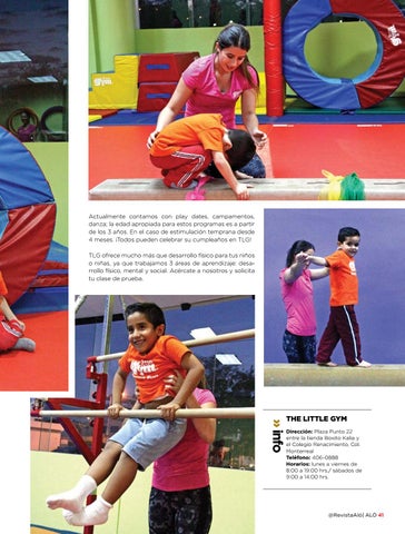 THE LITTLE GYM Dirección: Plaza Punto 22 entre la tienda Boxito Kalia y el Colegio Renacimiento, Col. Monterreal Teléfono: 406-0888 Horarios: lunes a viernes de 8:00 a 19:00 hrs./ sábados de 9:00 a 14:00 hrs.