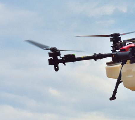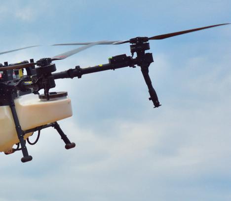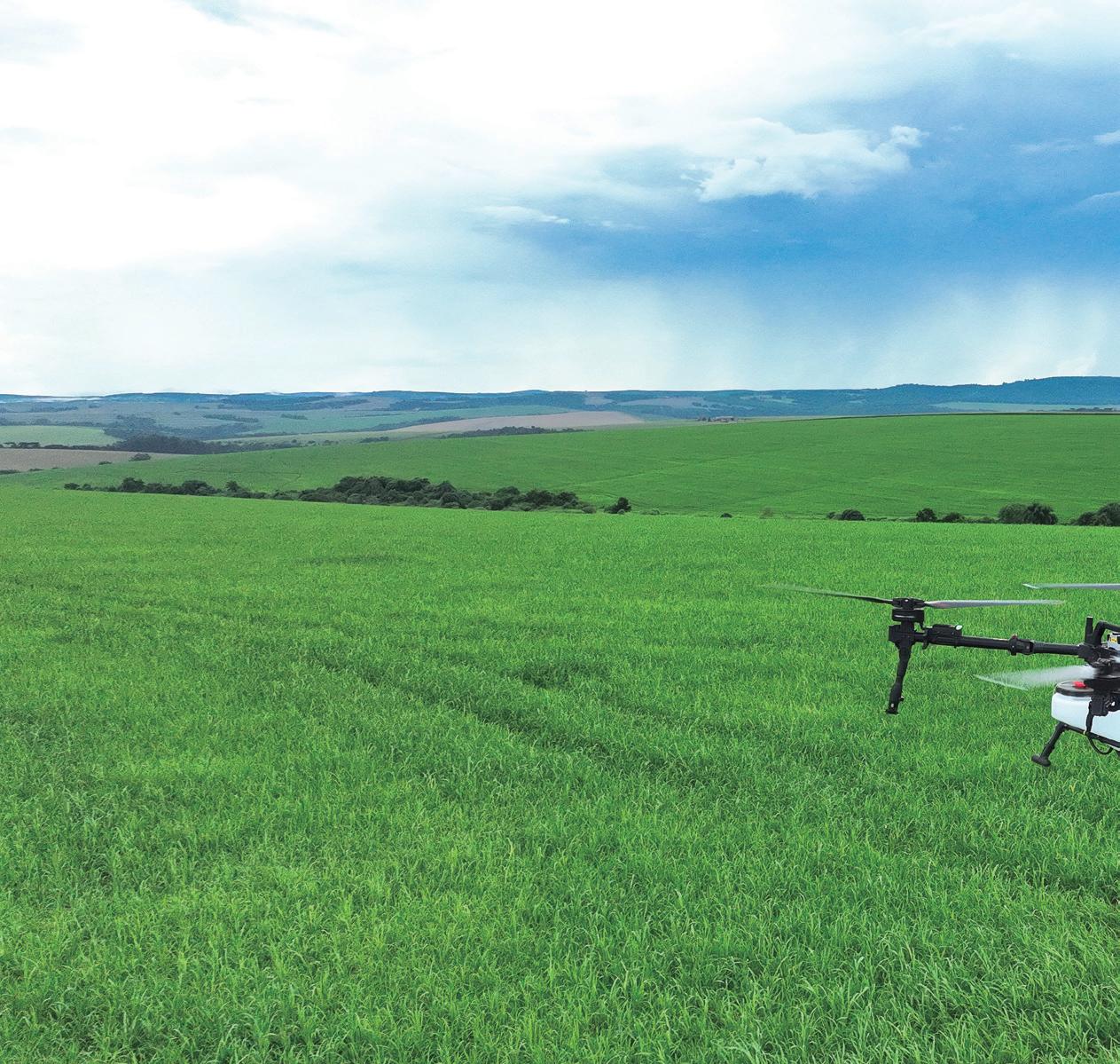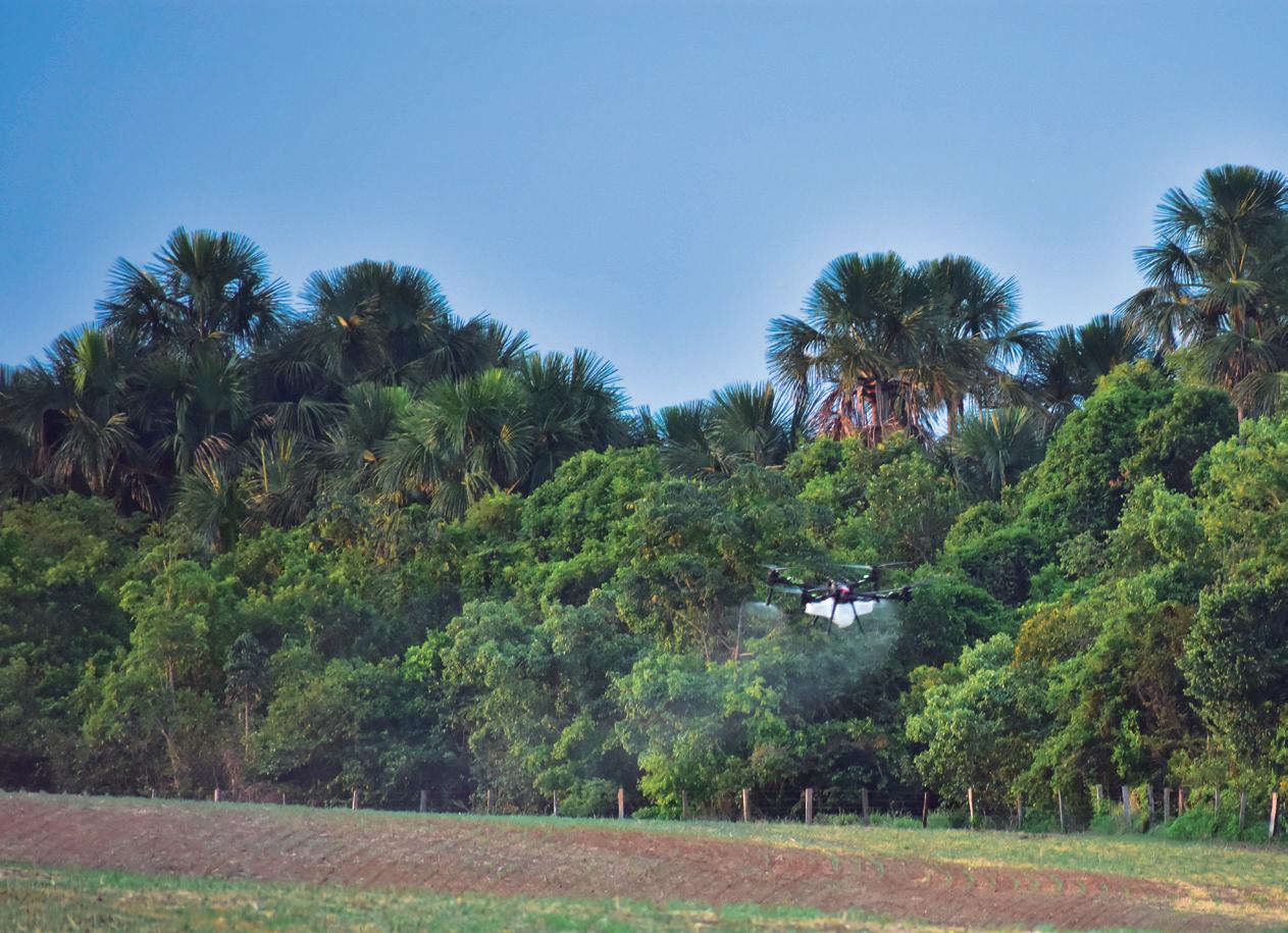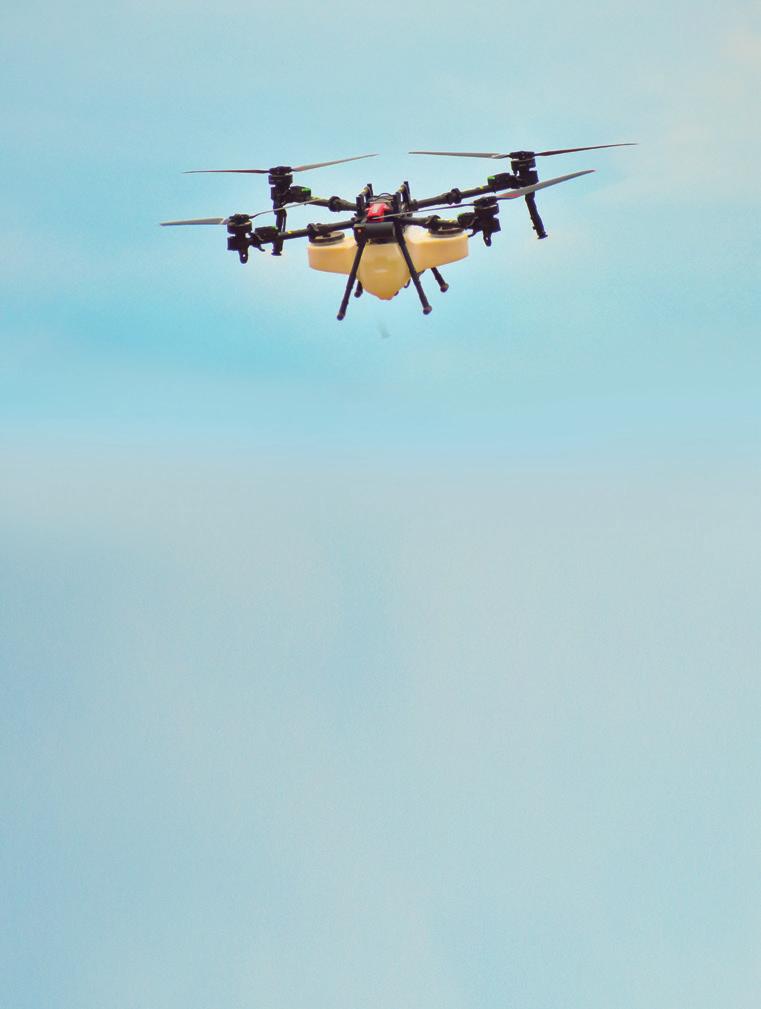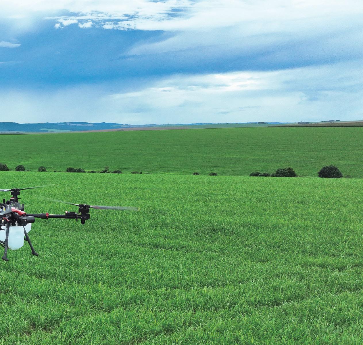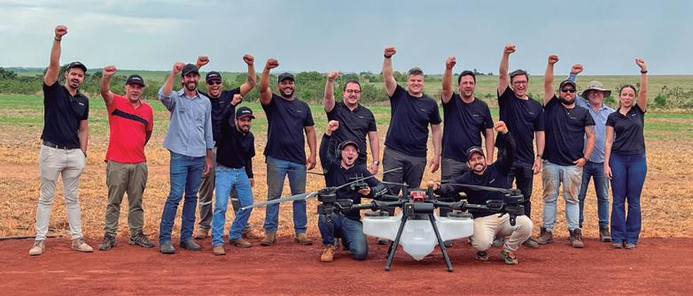 tos líquidos. Evidentemente não há ainda registros sólidos e comparáveis para se falar em recorde de aplicação de líquido com drone, porém se conseguiu estabelecer um marco importante, podendo ser referenciado como um número bastante significativo. No tempo total de 24 horas chegou-se a aplicar, nas condições estipuladas no desafio, uma impressionante área de 892 ha. Deslocou-se uma distância linear de 815 km, e o volume total de aplicação chegou a 7.039 l de líquido. Embora esta tenha sido uma prova de difícil repetição, poucos equipamentos atuais poderão alcançar números espantosos como estes. Ressalta-se