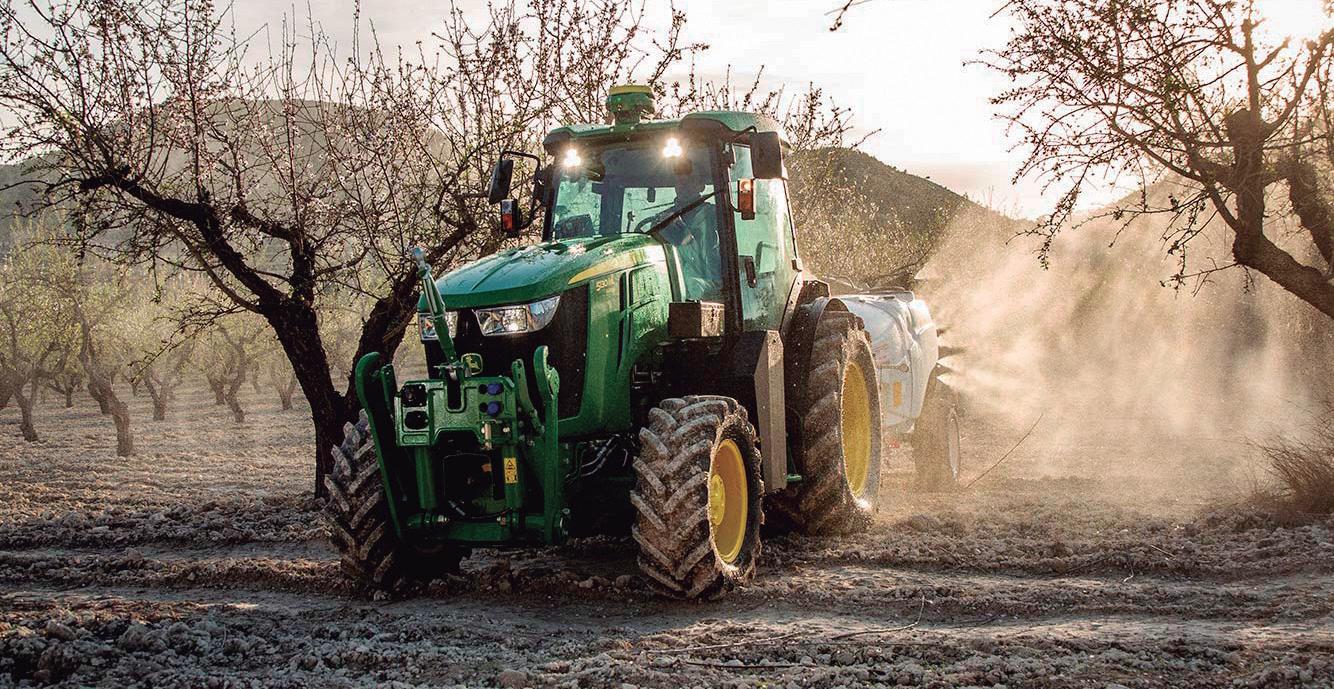 A primeira é o pulverizador autônomo Kfast, direcionado a culturas especiais como oliveiras, citros e nozes. Ele traz motor V3800-TIE5, tração 4×4, direção nas quatro rodas, navegação AGC com GPS RTK e LiDAR. O tanque comporta 2.000 l, a bomba trabalha com até 160 l/ min e possui 26 bicos duplos. A tecnologia H3O ajusta automaticamente a dose com base em detecção ultrassônica das árvores, o que pode reduzir insumos em até 25% e deriva em até 48%. O equipamento opera dentro da plataforma digital Specialty Crops Platform, que gerencia planejamento, execução autônoma e registros.