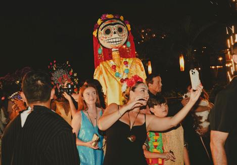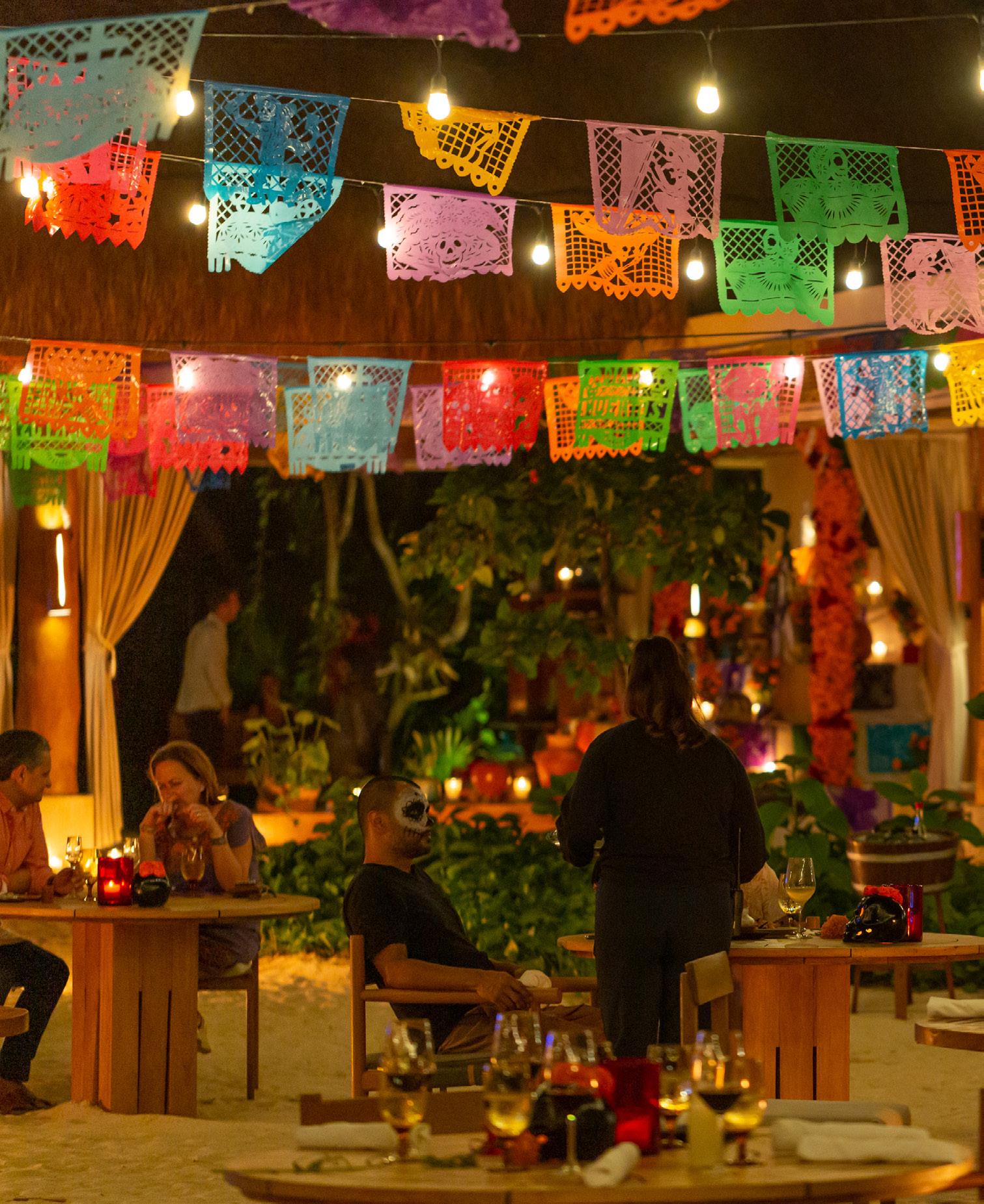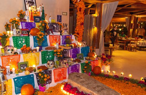 Durante los primeros días de noviembre, el resort se transforma en un escenario lleno de color y significado. La celebración inicia con una cena bajo el árbol sagrado de La Ceiba Garden & Kitchen, donde los asistentes, vestidos de negro, disfrutan de un menú inspirado en ingredientes tradicionales, música en vivo y un ambiente que invita a la introspección y al homenaje a los seres queridos que ya partieron.