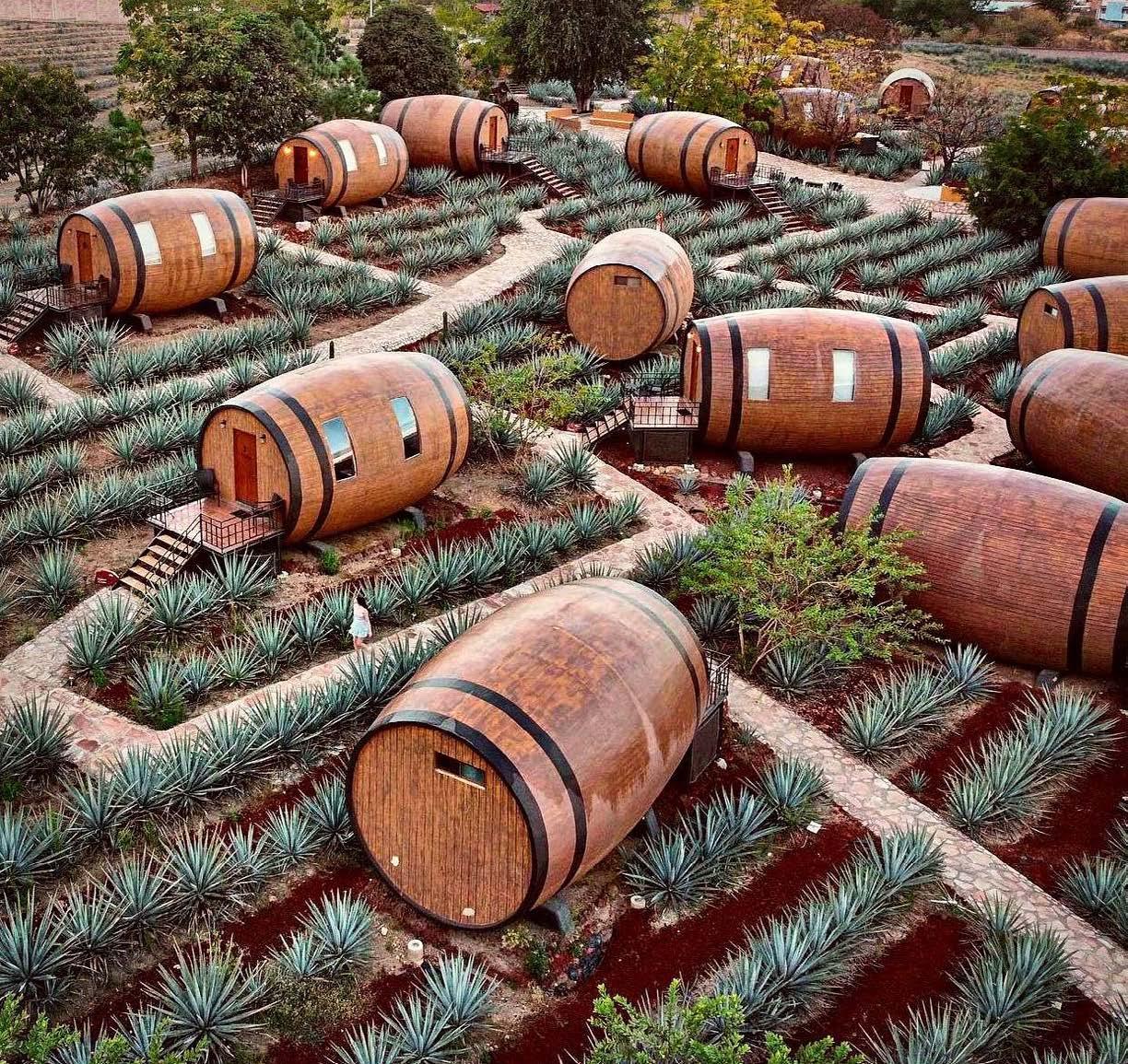Después de un fructífero día, una opción perfecta para hospedarte y seguir adentrándote en el ambiente tequilero es Matices Hotel de Barricas. En este majestuoso lugar podrás alojarte dentro de una barrica en medio de un auténtico campo de agave. Además, sus habitaciones están intervenidas por artistas mexicanos que te contarán una historia diferente en relación con el tequila.