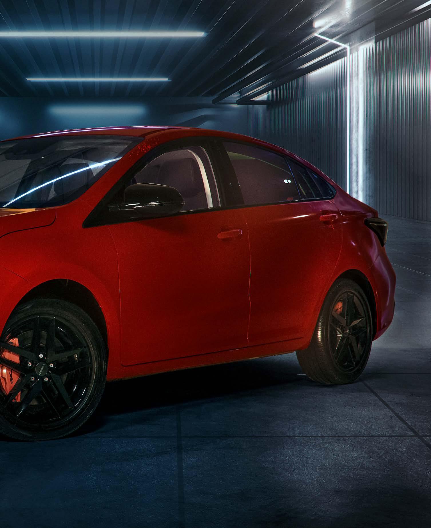 Su diseño exterior presenta detalles en negro brillante, como la parrilla delantera, los espejos laterales, las molduras y los rines. Estos elementos contrastan perfectamente con los colores disponibles, creando una apariencia llamativa.