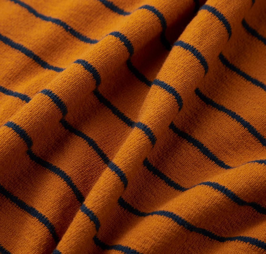 Moletinho listrado com textura e aparência rústica, oferecendo um visual distintivo. Sua gramatura adequada o torna ideal para conjuntos, combinando conforto e estilo para peças exclusivas e elegantes.
