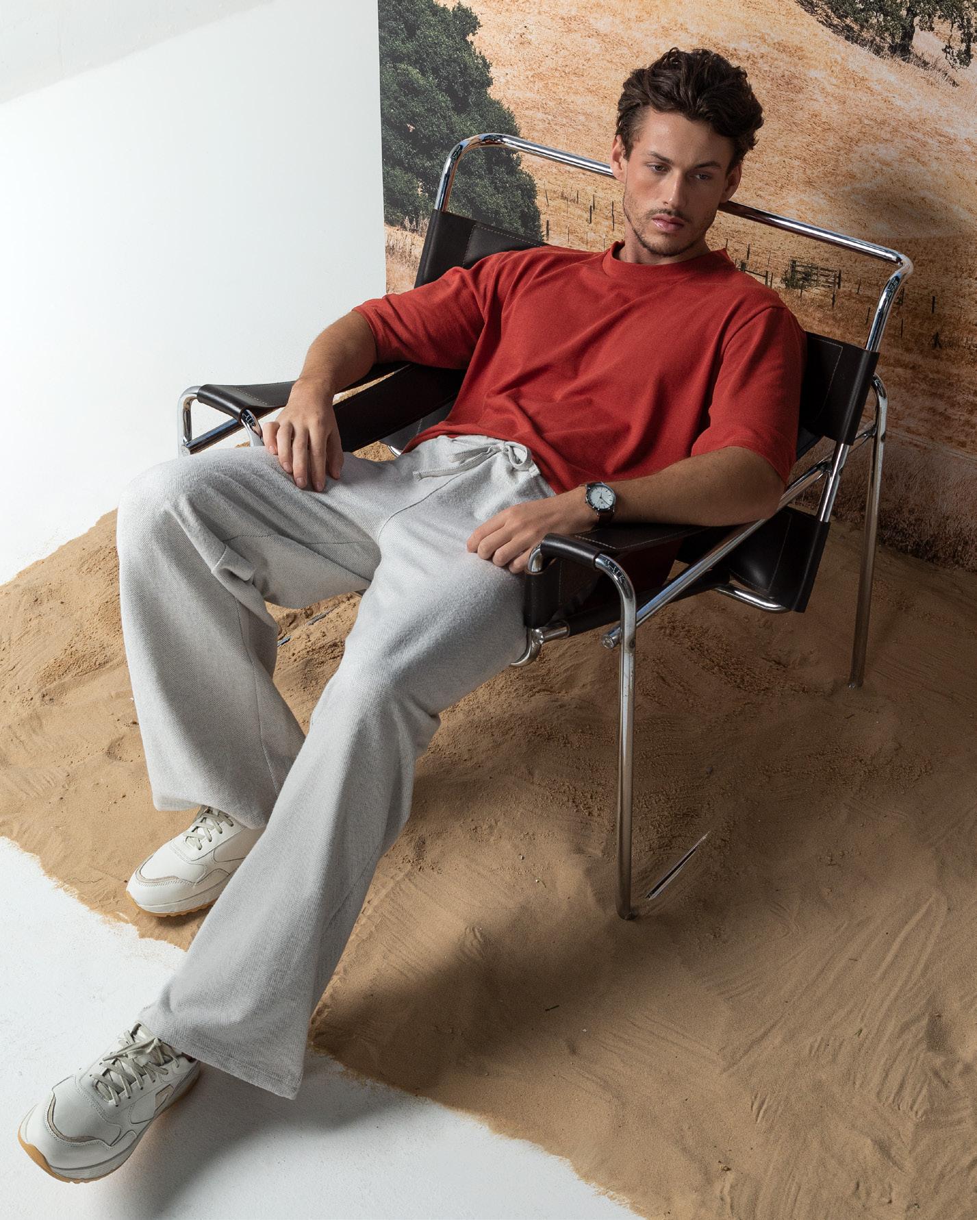 Moletom com linho e viscose em sua composição que conferem toque macio, caimento e visual rústico. Através do tingimento sustentável com auxílio de corantes naturais, esta peça ressalta um compromisso com a moda responsável. Indicado para todos os segmentos.