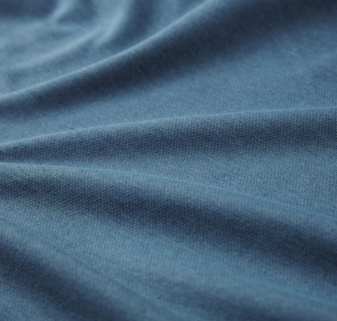 A malha com efeito sarjado apresenta uma textura diagonal característica de camisaria, enriquecida com biopolimento e amaciante. Essa combinação proporciona caimento, toque suave e um visual e sofisticado.