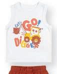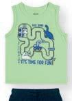 Conjunto com Regata em Meia Malha e Bermuda em Moletom Texturizado Estampado Set with Jersey Tank Top and Texturized Print Cotton Fleece Shorts Conjunto con Regata en Tejido de Punto y Bermuda en Moletón Texturizado Estampado
