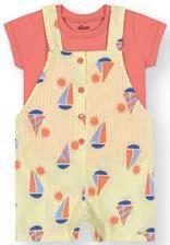 Conjunto com Camiseta em Meia Malha e Macacão em Molecotton Sarjado